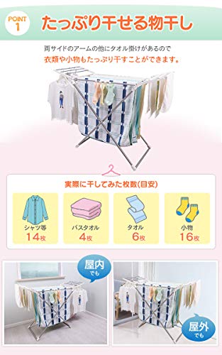干す量の目安:シャツ等16枚、バスタオル4枚、タオル6枚、小物20枚