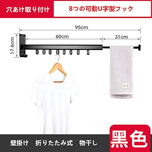 Homeme 洗濯物干し 室内物干し 耐荷重50KG 折りたたみ式 穴あけ 壁掛け 伸縮タイプ 隠し物干し 宇宙アルミ 物干