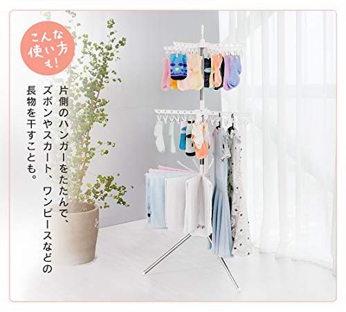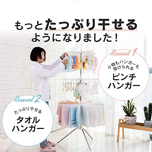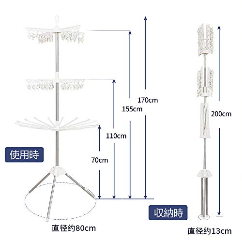Hershii 室内パラソル物干しスタンド 物干しラック タオル干し ピンチ付き 折畳収納 組立簡単 3段式 (ピンチハ