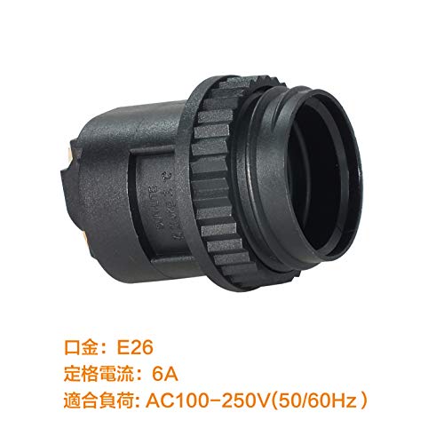 2.E26口金ランプソケット,6個入り、色:黒い、サイズ(CM):[ファイ]40mm高さ51.3mm,本体重量:35g/1個。