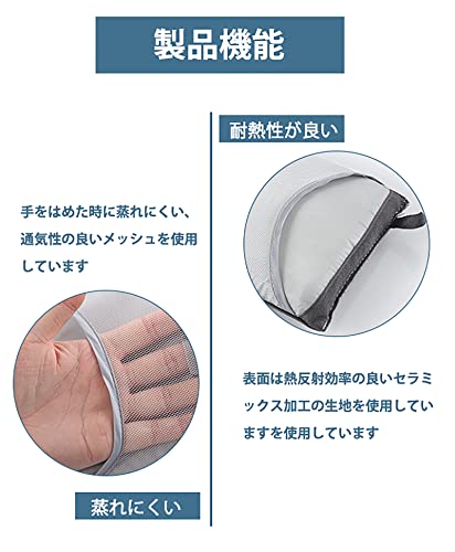 【驚きな耐熱性】:アイロンミトンの中は耐熱スポンジ材質で、その上に耐熱膜を包んで、熱反射効率の良いセラミックス加工の生地を使用して、耐熱温度は200[度]になることができます。それに、アイロン台の上面は網のデザインですから、 優れた通気性があって