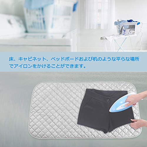 【耐熱性&高効率】アイロンマットはテーブルの上に敷けばどこでもアイロン台として使えます。中綿の質がしっかりしており、水分を吸収してきれいに仕上げます。マットの下が熱くなったり湿ったりするのも抑えています。表面は丈夫な綿生地を採用し裾や布端の折り上げ等の作業効率がアップします。アイロンパッドは好きな平たい場所をアイロン台替わりに使え