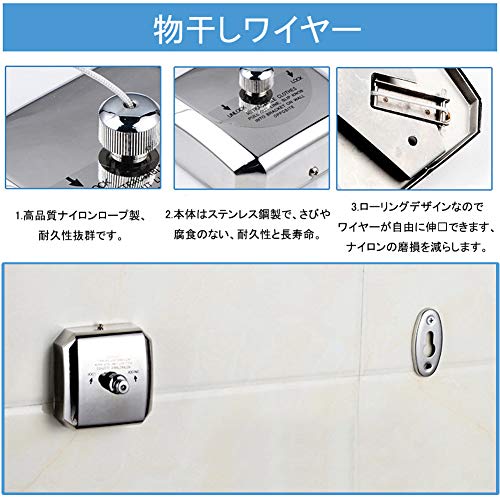 | 商品名 | LUCKYBEE 室内物干しワイヤー 壁かけ式 伸縮式物干しロープ ステンレス製 収納簡単 コード巻き取り物干しハン |
