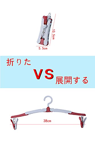 ハンガーの仕様:折りたたみ式ハンガー6個(赤3個+青3個)が防風クリップでハンガーに掛けられます(ハンガー1個は両端に2本のピンがあります)サイズ(全開):38.5cm×15.5cmサイズ(半開き)):24cm ×9cm寸法(折りたたんだ状態):10.5cm×5.5cm