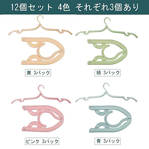 携帯ハンガー 旅行ハンガー 12個入り(4色) 洗濯ロープ1本 折りたたみ ハンガー 旅行ハンガー 折り畳み式 携帯