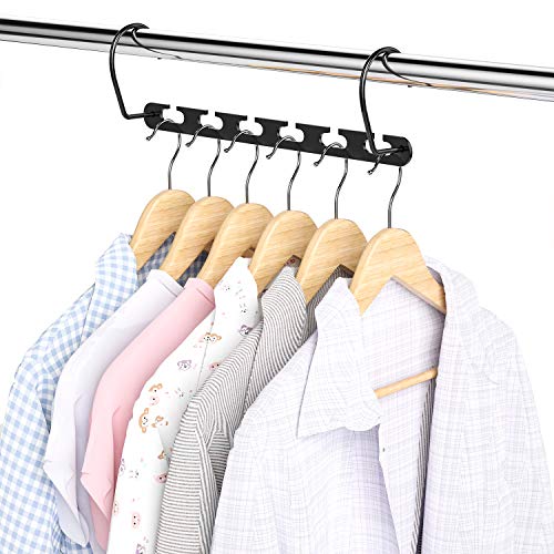 Joyoldelf ハンガー 収納 6連クローゼットハンガー 洗濯 ステンレス (6本組-ブラック)