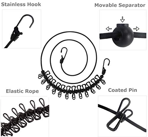 12個クリップ付き、靴下や下着などをクリップして干すことができます。クリップが移動可能で、あなたの需要に移動することができます。