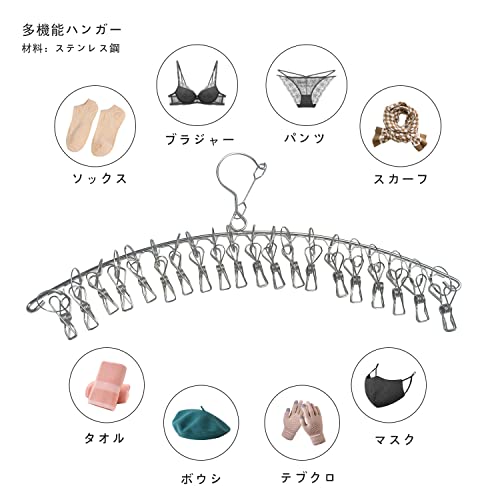 ?【実用性】ハンガーには20個ピンチが付きます。独身はもちろん、家族でのご使用もお薦めです。フックはハンガー本体にハングして余計な線やリンクがなくて絡みつきにくいです。溶接部分にギザギザがなくて、干物に傷が出ません。