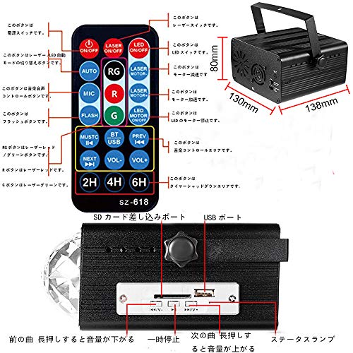 | 商品名 | ステージライト USB充電 SDカード/Uディスクサポート 音声制御 赤外線リモコン付き LED 多色RGB舞台照明 フラッ |