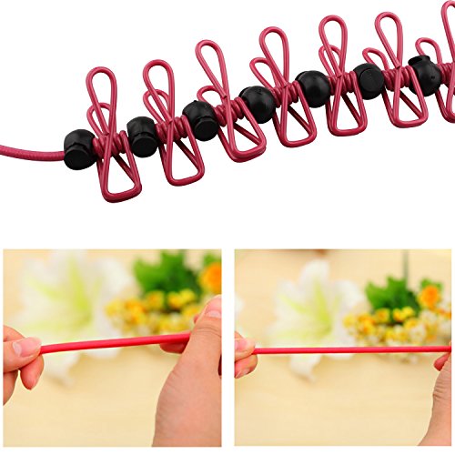 優れたロープ:両端のフックを使って簡単にロープを張ることができます。高い弾性と耐久性があり、軽く、収納に困ることのない優秀な物干しロープです。