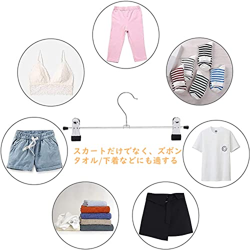 【クリップの幅調節可能スカートハンガー】クリップは左右にスライドするので(約10~29cm)、スカート、ズボンに適するだけではなく、マフラーやスカーフ、水着やインナー小物類にも適しています。ご都合によってハンガーの幅を調節できます。