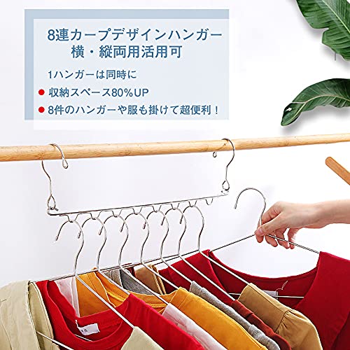 ?【省スペース】お得5枚セットです!_ハンガー1本分のスペースを取り、シャツ、女性用シャツ、スーツ、ジャケット、コート、セーター、パンツ、ワンピースなどを8枚まで吊るすことができます。スペースを80%まで解放し、クローゼットの省スペース化とすっきり感を最大限に引き出します。