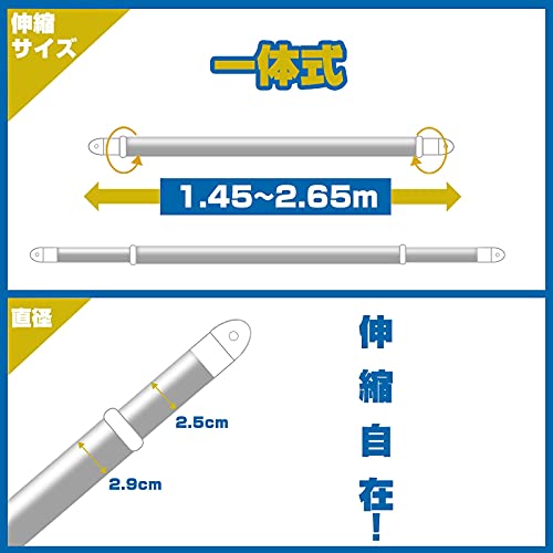 Libzaki 伸縮式物干し竿 304ステンレス 長さ1.45m~2.65m 室内屋外どちらでも使える 洗濯布団物干し 最大荷重力50KG(