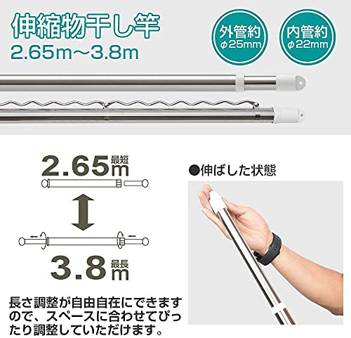 HSdhome 物干し竿 2.65m~3.8m ものほしざお 屋外 室内物干し ステンレス 伸縮 2本セット ベランダ 洗濯物干し 竿