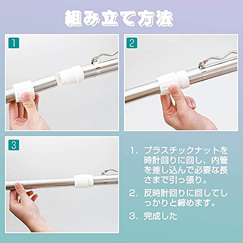 サイズ:2.65m~3.8m ハンガー掛け竿*2本