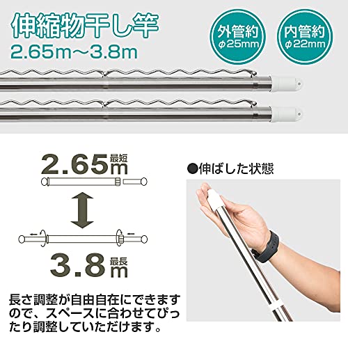| サイズ | 2.65m~3.8m ハンガー掛け竿*2本 |