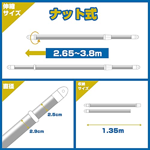Libzaki 伸縮式物干し竿 304ステンレス 長さ2.65m~3.8m 室内屋外どちらでも使える 洗濯布団物干し 最大荷重力50KG(2