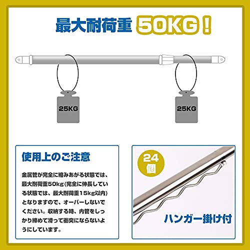 丈夫なステンレス製:物干し竿のパイプは優れた304ステンレスを採用し、丈夫な鋼管にステンレスを被覆した2重構造になっているのでしっかりしていて、直径が29mmで太くて頑丈です。最大荷重力は50KG。日差しで変色することがなく、サビに強くて、お手入れもしやすくて雨の日でもタオルなどで乾拭きをすれば、綺麗に汚れが取れま