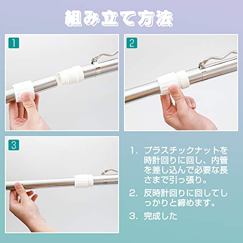 | サイズ | 1.4m~2.0mx2本セット (ストレート竿*1本、ハンガー掛け竿*1本) |