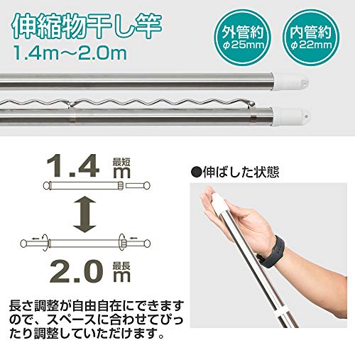 サイズ:1.4m~2.0mx2本セット (ストレート竿*1本、ハンガー掛け竿*1本)