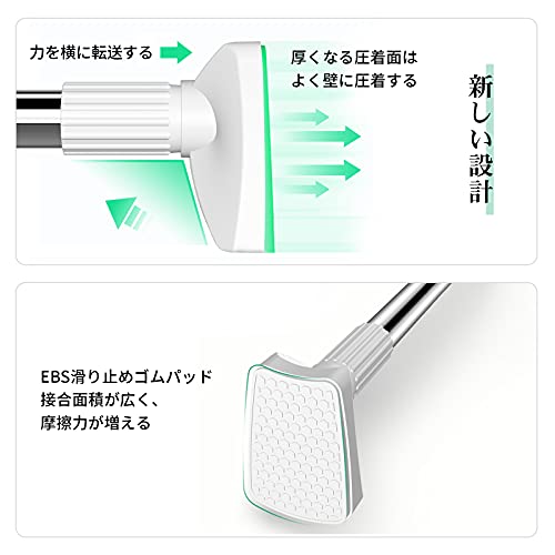 「高品質な素材」弊社の突っ張り棒はステンレスを採用した伸縮ロッドとABS樹脂を加工した圧着板を備えています。突っ張り棒の長さに応じて、耐荷重が約22.5~100kgです。また、ロックナットを内蔵しており、ステンレス製であるため、錆びたり、カビが発生しにくくて、長くご使用頂けます。