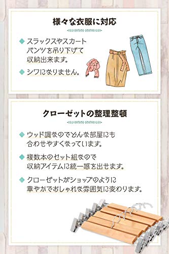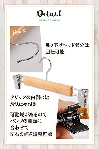 【ぬくもりを感じる木のつくり】さらっとクローゼットに収納できるクリップ式のパンツハンガー