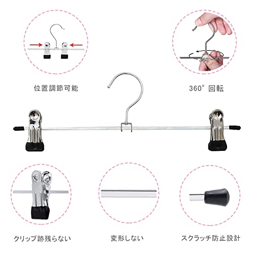 ズボンハンガー 30本組 スカートハンガー クリップ 洗濯 ハンガー 保護ラバーで傷つかず 360度回転 サイズ調整