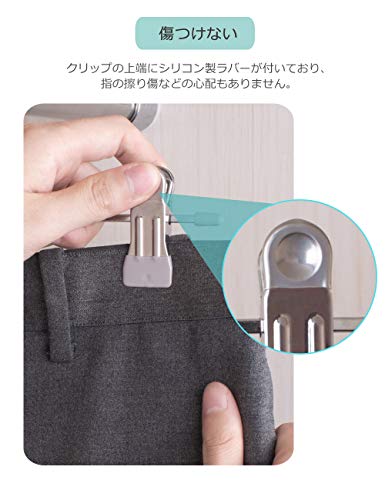 【PVCコーティングで保護・滑り止め】クリップの上端にシリコン製ラバーが付いており、指の擦り傷などの心配もありません。はさむ部分にもPVCコーティング加工がされているので、重たい洗濯物や靴下、下着など、ボトムス以外にも落ちずに優しく、かつしっかりはさんでくれます。