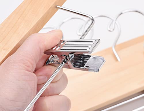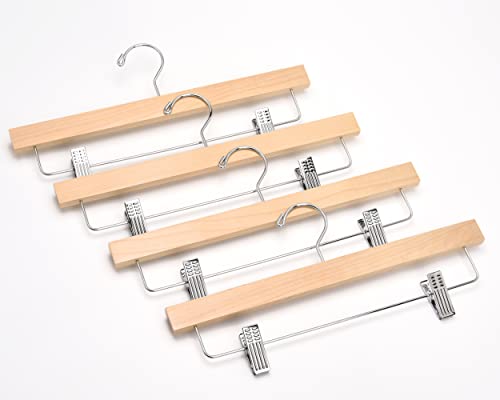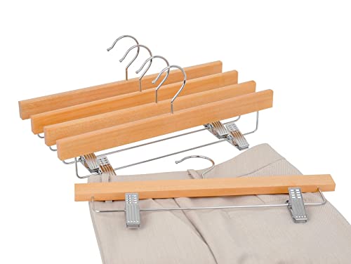 Amber Home 天然木製ズボンハンガー 10本組 ナチュラル色 スカートハンガー パンツ ボトムス スラックス シュー
