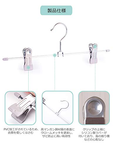 tomoneed ズボンハンガー スカートハンガー 高マンガン鋼材 サビ防止 保護ラバーで傷つかず サイズ調整可 跡つ
