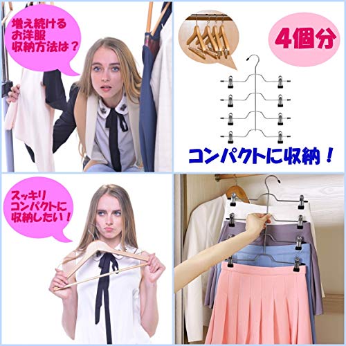省スペースハンガー1本でボトムスを4本分収納できるスグレもの!このスカートハンガーは増え続けるボトムや衣類を見やすく、わかりやすく整理整頓してくれてので、クローゼットや衣装ラックの空間を 無駄なく使うことができます。