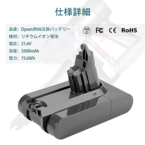 | 商品名 | V6 バッテリー 21.6V 大容量3500mAh Dyson DC62 DC61 DC59 DC58 DC72 DC74 SV03 SV04 SV06 SV07 SV09対応 壁掛けブラケット対応 ダイ |