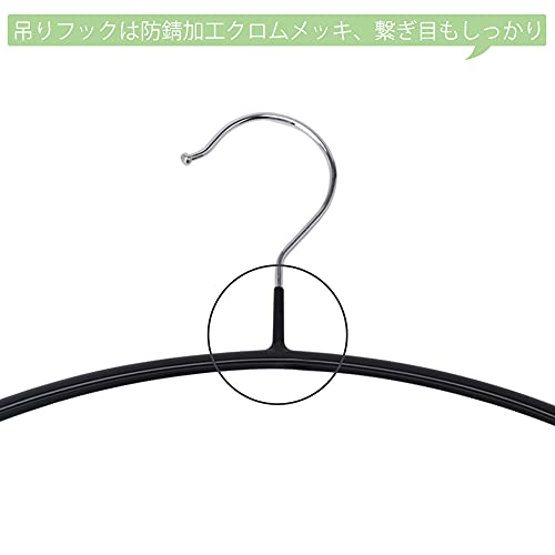 【高品質】工場で一本一本丁寧に仕上げたハンガーです。型崩れなどを防止するために、耐水性、耐候性、耐熱性に優れたPVC(ポリ塩化ビニル)が使われています。フック部分は防錆加工クロムメッキを使用しており、つなぎ目は特殊加工しているので耐久性と安全性がとても良いハンガーです。