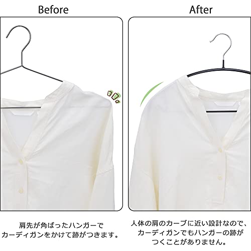 【抜群なデザイン】緩やかなアーチ型で丸い形状をしていますが、特殊加工のコーディングのおかげで滑って外れてしまうストレスから解放されます。肩幅と合っているサイズなので衣類にハンガーの跡が残りません。 さらにスラック