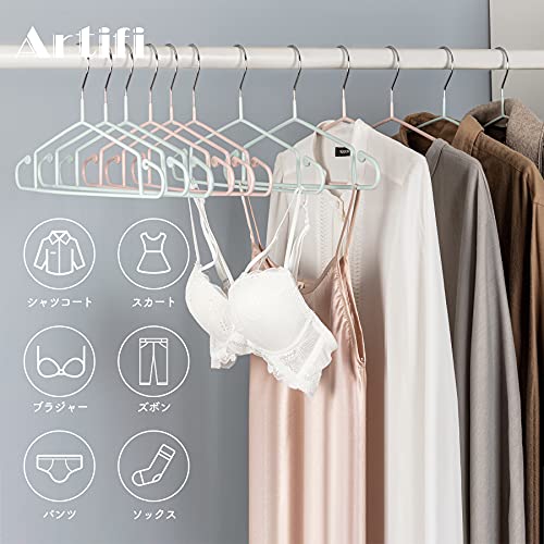 【滑り止め】弊店のハンガーは滑り止めPVCコーティングが実施しており、どんな衣類もしっかり滑らないから、滑り落ちる心配がありません。Artifiハンガーの滑り止め性能は非常に優れており、シルクの服を掛けても滑り落ちの心配もありません。