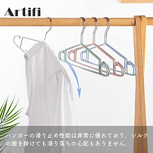 【滑り止め】弊店のハンガーは滑り止めPVCコーティングが実施しており、どんな衣類もしっかり滑らないから、滑り落ちる心配がありません。Artifiハンガーの滑り止め性能は非常に優れており、シルクの服を掛けても滑り落ちの心配もありません。
