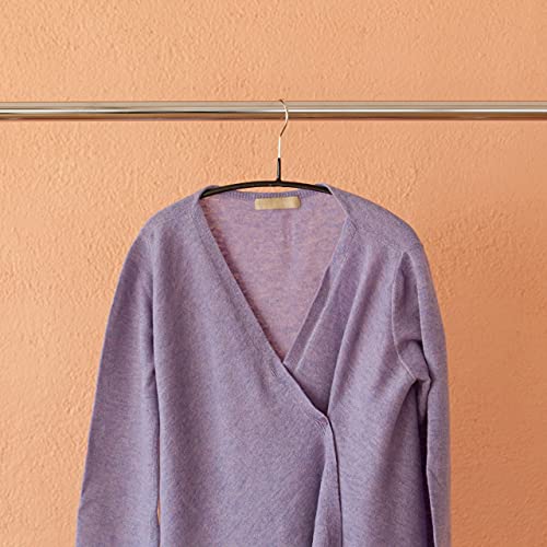 ノンスリップコーティングがハンガー全体で衣類をしっかりキャッチするので、カーディガンやニットも型崩れなく収納できます。 掛けた衣類がすべり落ちることもありません。 襟のない丸首のシャツやブラウス、前開きのカーディガンなどに適しています。