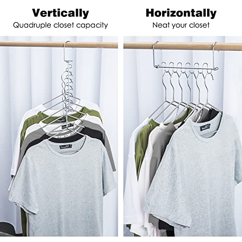 【クローゼットすっきり!】コンパクト設計での12連マジックハンガー、同時に衣類 12枚の衣服を掛けて、収納の効率を大幅アップ。クローゼットの空間を最大化に利用されます。ハンガーを重ねて掛けて空間を広げて、特により多くのスペースない家は最適で超便利です。