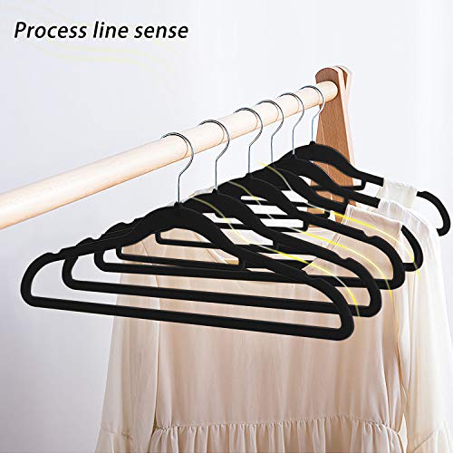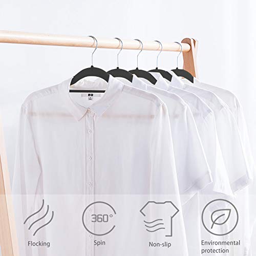 Grandma Shark ハンガーベルベット滑ネクタイり止め付多機能植毛ハンガー 軽量・薄厚 360°回転フック ベーシック