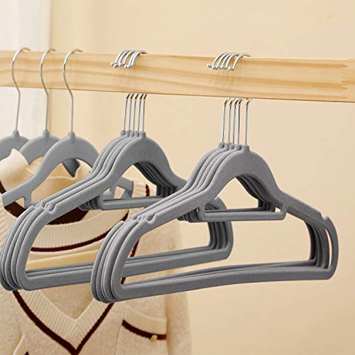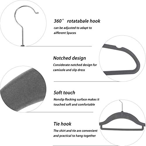 Grandma Shark ハンガーベルベット滑ネクタイり止め付多機能植毛ハンガー 軽量・薄厚 360°回転フック ベーシック