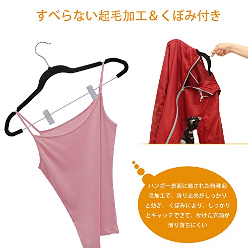 【滑り止め安心】ハンガー表面に施された特殊起毛加工で、非常に摩擦力があるので、滑り止めがしっかりと効きます。更にくぼみにより、
