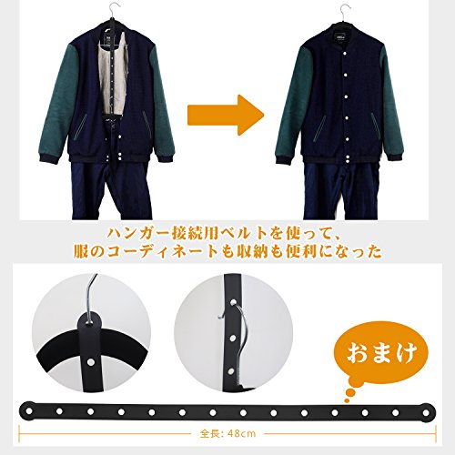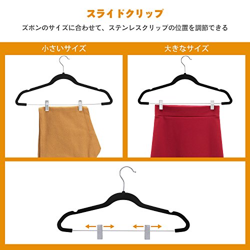 【省スペース便利】スライドクリップが付きますので、上着とズボンを同時に収納して省スペースです。スーツなどはスラックスとジャケットを一緒にかけられるのも便利です。厚さもわずか5mmで、クローゼットの空間も節約できます。