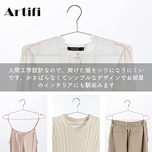 【滑り止め】弊店のハンガーは滑り止めPVCコーティングが実施しており、どんな衣類もしっかり滑らないから、滑り落ちる心配がありません。Artifiハンガーの滑り止め性能は非常に優れており、シルクの服を掛けても滑り落ちの心配もありません。