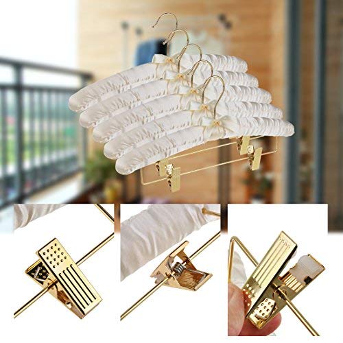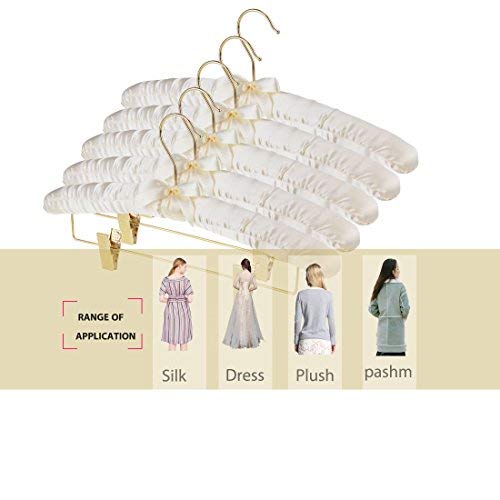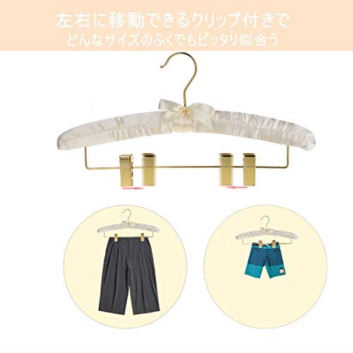 DEWEL スポンジハンガー サテンハンガー 布ハンガー クリップ付き リボン付き 布製 シルク ふっくらハンガー