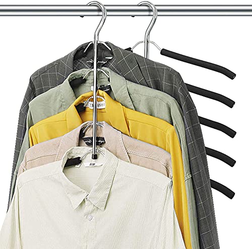 【生活が便利化】ステンレス製とEAVフォームバーでできているので、長時間に使えます。EVAフォーム付きのシャツハンガーは衣類が掛かっている状態で本来の様子を守り、シワと折り目が付きにくくなります。また、衣類を1本のハンガーに収納で一目瞭然でき、目的の衣類を探しやすくなります。