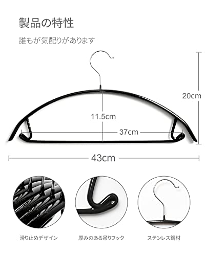 【ハンガー特徴】:滑り止めのゴムコーティングで主にコーティングされています。力学の原理により、半円のデザインが肩の突起を取り除き、服の形をキープします。滑らないハンガー、ぶら下がったリボンがついていない服に適します。