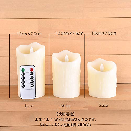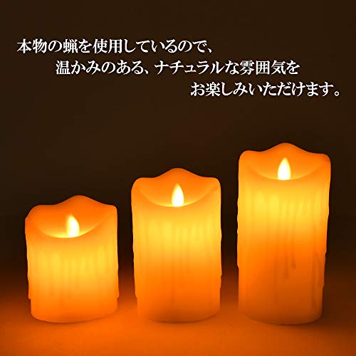 LEDキャンドルライト 3本セット 本物の蝋 リモコン付き ロウソク リアル キャンドル 揺らめく 間接照明 インテ