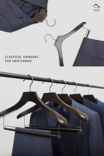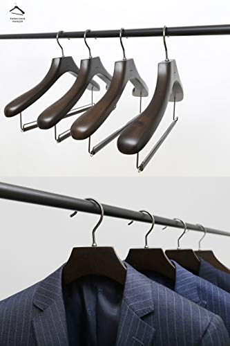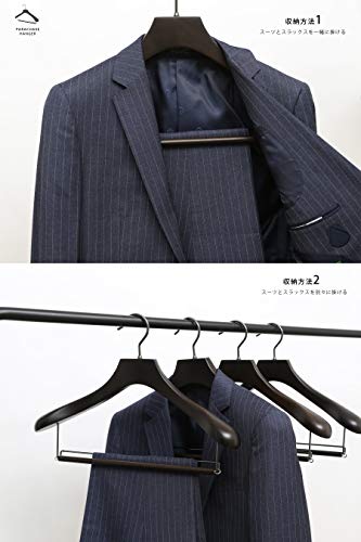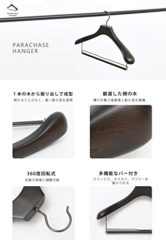 PARACHASE 木製ハンガー セット 4本組 スーツ・ジャケット・コート用 スラックス用バー付 メンズ 男性用 胡桃色