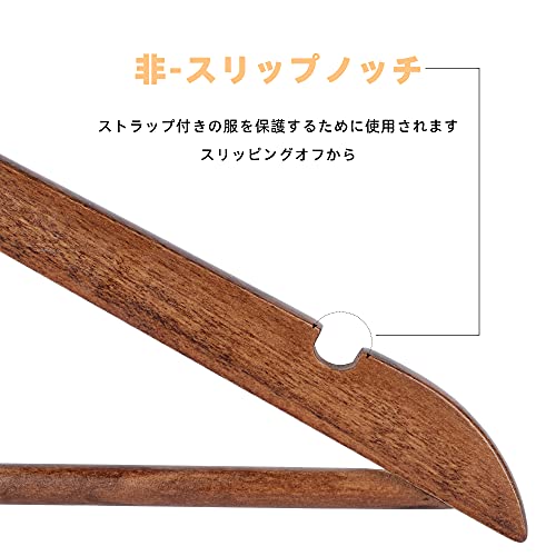 木製ハンガーセット スーツ ジャケット用 肩幅44.5cm 肩厚1.2cm 高さ23cm 天然高級木 (茶褐色 12本組)