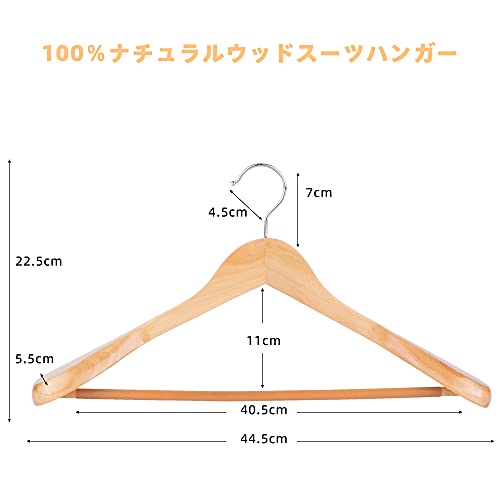 スーツハンガー 木製ハンガー 衣類ハンガー 洋服ハンガー 肩幅大きめ 滑り止め スーツ・ジャケット・コート
